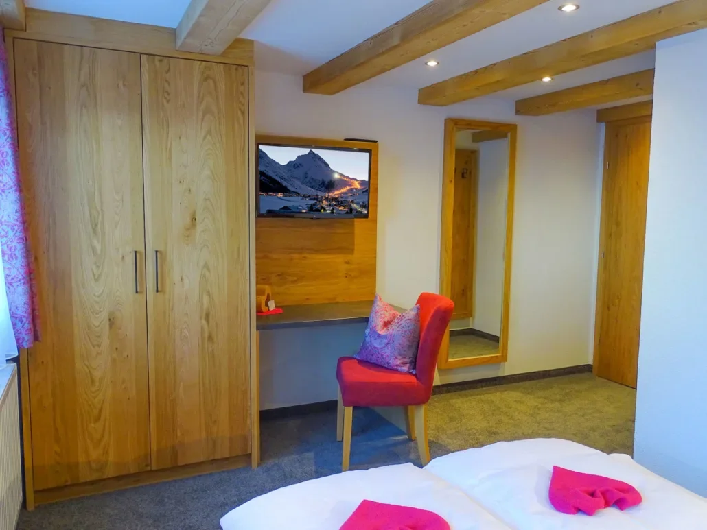 Unsere Zimmer und die Ferienwohnung sind sowohl im Sommer als auch im Winter buchbar. Umgeben von der beeindruckenden Bergwelt der Silvretta genießen Sie bei uns einen herrlichen Ausblick auf die umliegenden Gipfel, klare Bergluft und wohltuende Ruhe – perfekt, um den Alltag hinter sich zu lassen.